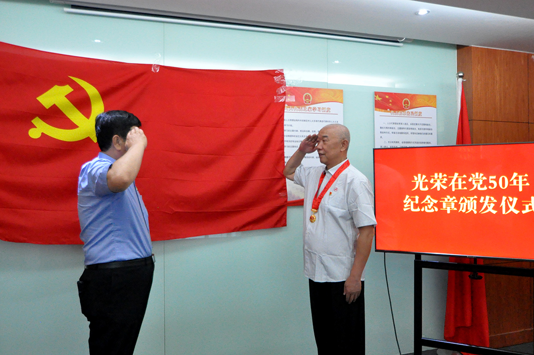 为扎实推进党纪学习教育走深走实,进一步增强离退休职工党员的荣誉感、归属感、使命感,在中国共产党成立103周年到来之际,安达集团党委在集团四楼会议室为安达二支部退休老党员童传辉举办“光荣在党五十年”纪念章颁发仪式。安达集团党委书记、董事长崔洪金,安达集团二支部书记、安达物流总经理郑玉强,部分退休老党员以及集团在职党员共同参加。